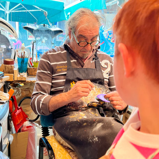 We went to Murano and saw a glassmaker in action and we bought a horse that we saw him make. We also went to Burano where lace is made. We saw a jellyfish in a canal.